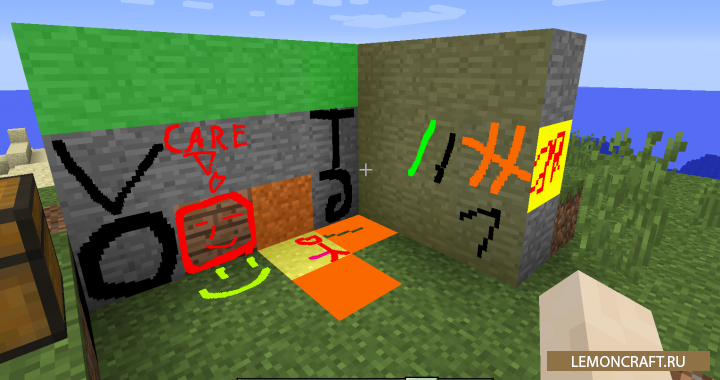 Мод на рисование MC Paint добавляет в игру инструмент, который позволит вам рисовать на блоках все что вашей душе угодно. Данный инструмент очень похож на стандартный Paint который вы можете видеть в Windows. После установки данного мода вы сможете разрисовать свое жилище во все цвета радуги. Так же вы можете сделать надписи, например дать названия улицам и проставить номера домов. Во время создания рисунка можно выбрать различные расширения: 16х16, 32х32, 64х64 и 128х128 пикселей. Рисунок можно скопировать и перенести его на другие блоки.