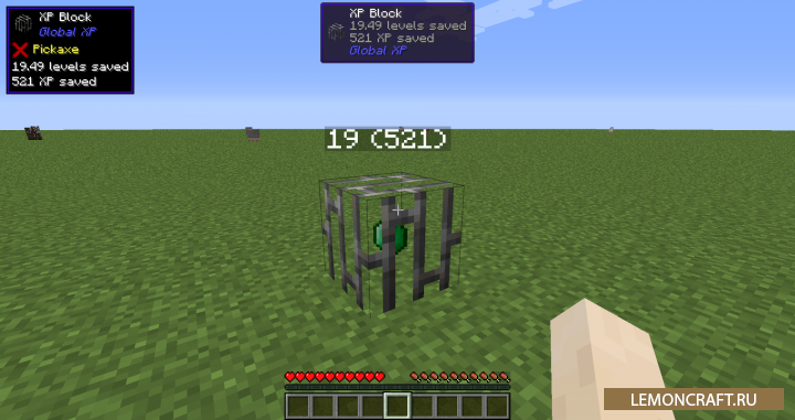 Мод на блок опыта Global XP добавляет в игру специальный блок, который будет играть роль хранилища вашего опыта. Теперь, после вашей смерти, вы не потеряете весь накопленный опыт, достаточно иногда сохранять его в новом хранилище. Для того, что бы сохранить опыт, нужно присесть и нажать правой ПКМ. Для того, что бы забрать 1 единицу опыта просто нажмите ПКМ.